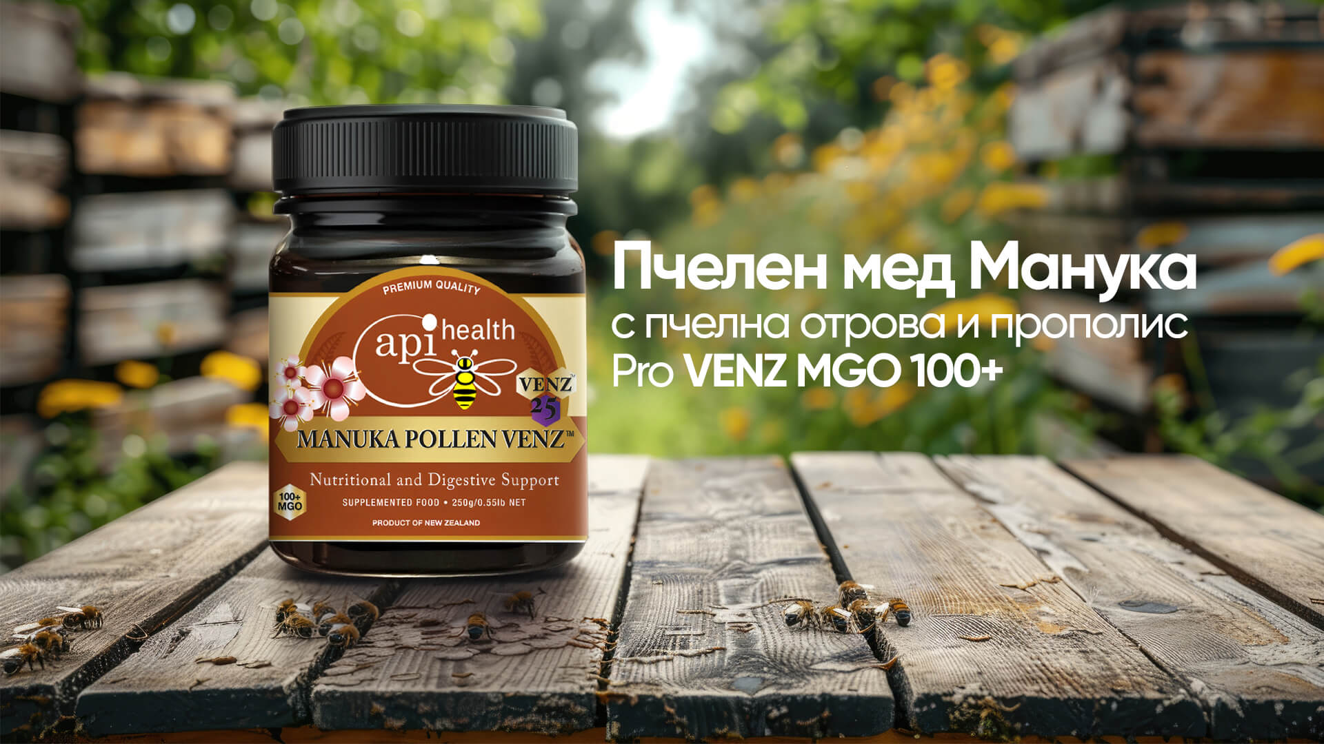 Пчелен мед Манука с пчелна отрова и пчелен прашец PollenVENZ MGO 100+, 250 g
