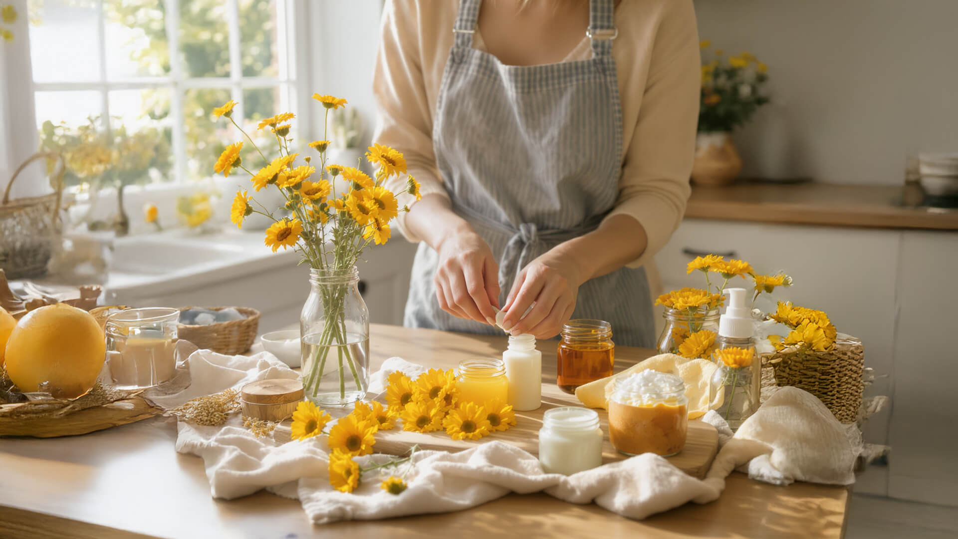 Мехлеми и кремове с масло от невен подобряват бариерната функция на кожата, предотвратяват сухота и подпомагат производството на колаген.