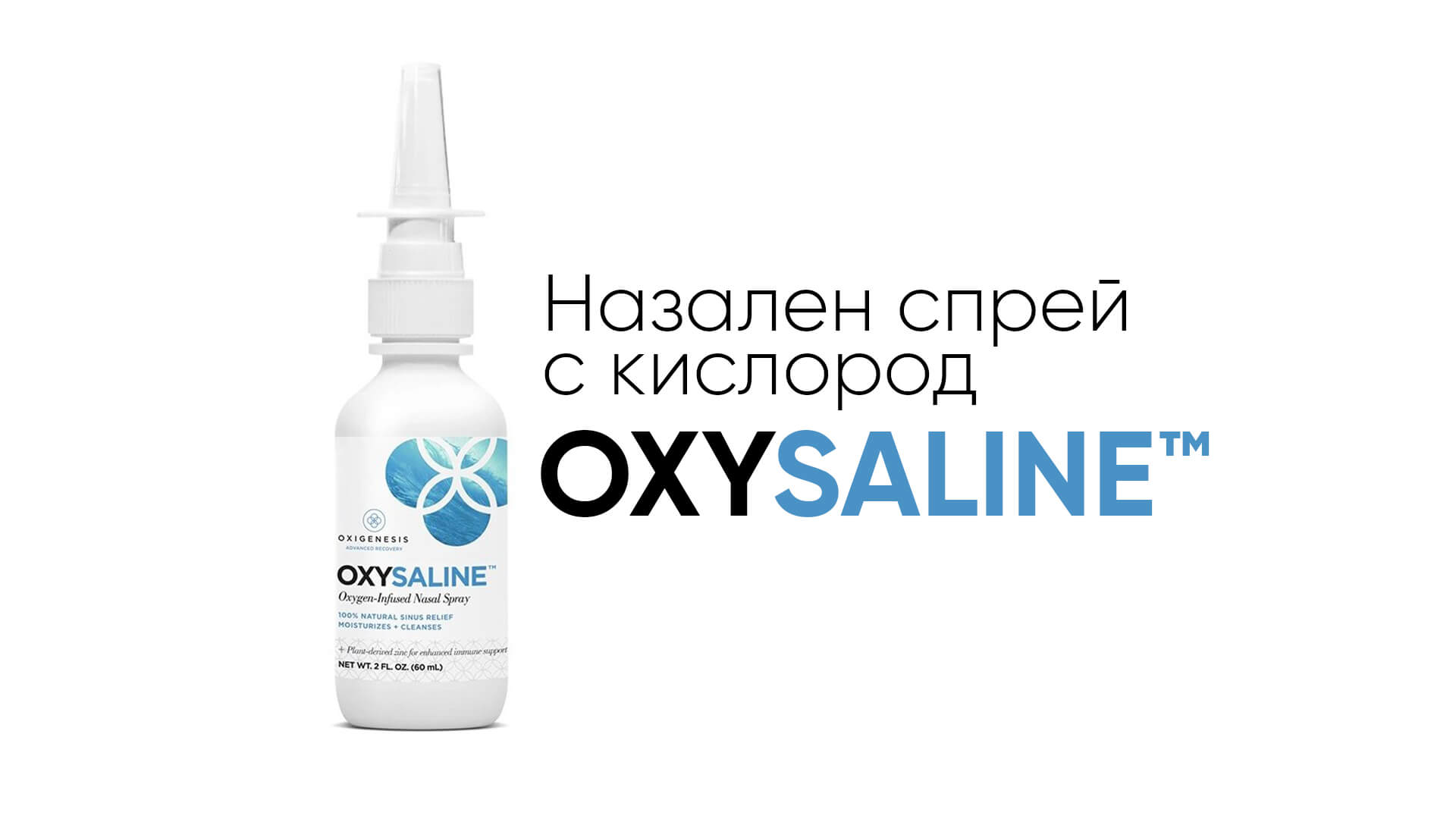 Oxysaline™ е 100% натурален назален спрей, който съдържа активиран стабилизиран кислород (ASO®), йонен цинк от растителен произход и морска сол. Той е подходящ за цялото семейство, като осигурява нежно и ефективно облекчаване при суха и раздразнена назална лигавица, запушен нос, хрема и синузит. За разлика от конвенционалните медикаментозни спрейове, Oxysaline™ не съдържа лекарства, алкохол, химикали или консерванти и не предизвиква сънливост или привикване.