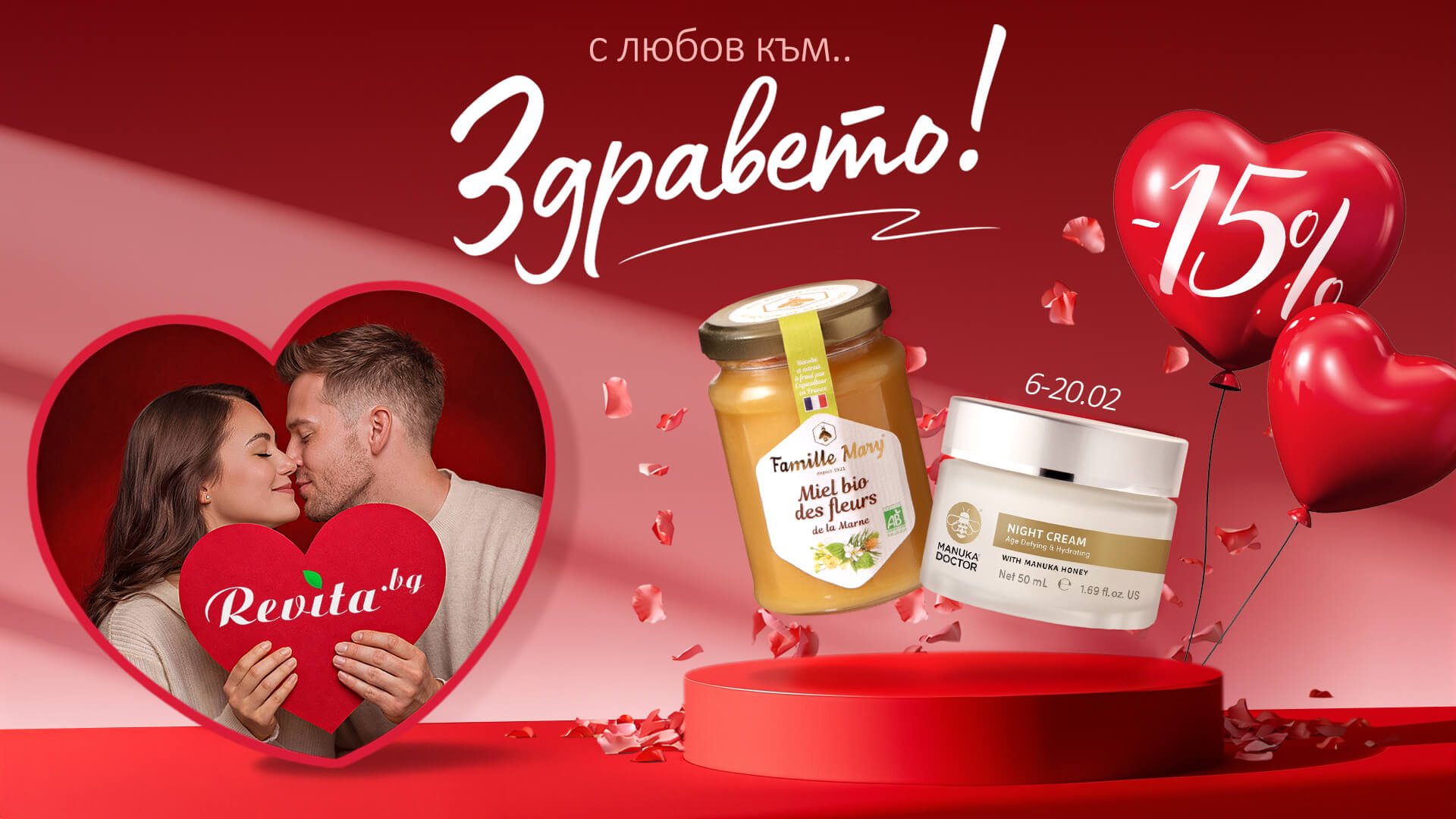 Revita.bg отбелязва деня на виното и любовта с промо акция: -15% на всички гурме изкушения и козметични продукти! Офертата е валидна за периода 6.02-20.02. и включва голямо разнообразие от природни продукти с гарантирано качество.