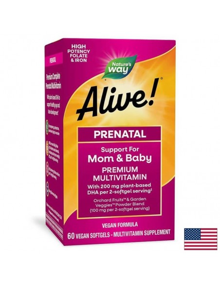 Мултивитамини за бременни премиум Алайв с растителна DHA Alive! Complete Premium Prenatal Multivitamin 60 софтгел капсули