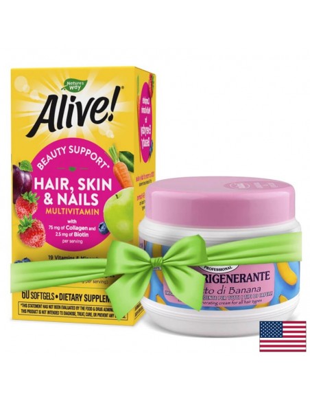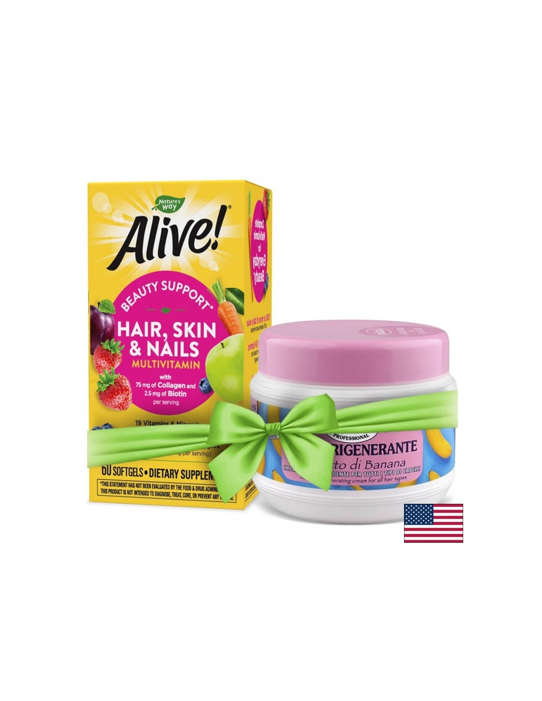 При поръчка на 1 бр. от продукта Алайв Коса, кожа и нокти, получавате безплатно възстановяваща маска за коса MilMil.