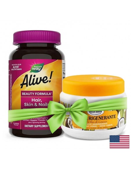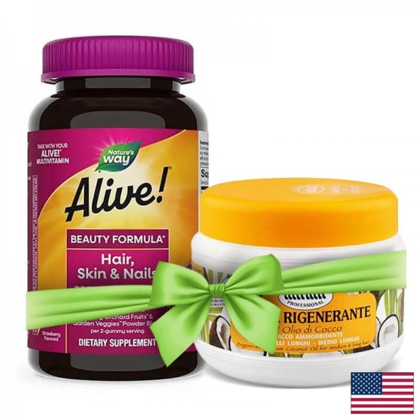 При поръчка на 1 бр. от продукта Алайв Коса, кожа и нокти, получавате безплатно възстановяваща маска за коса MilMil.