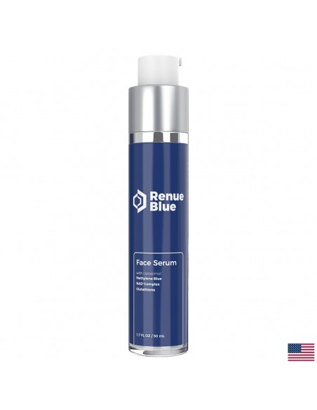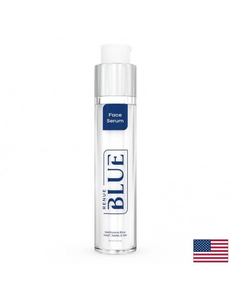 Новата и подобрена формула на Renue Blue Face Serum доставя през слоевете на кожата два пъти по-голямо количество метиленово синьо (в сравнение с други продукти с тази съставка), заедно с липозомни NAD+, NMN, NR, апоцинин, глутатион, алфа-липоева киселина - използвайки революционна нанолипозомна технология. Витамин Е и допълнителните овлажняващи съставки като Helianthus Annuus (от слънчогледов лецитин), гел от алое вера, екстракт от морски водорасли, хиалуронова киселина и лимонена киселина допринасят за отличната хидратация на кожата, оставяйки я след нанасяне нежна, мека и еластична.