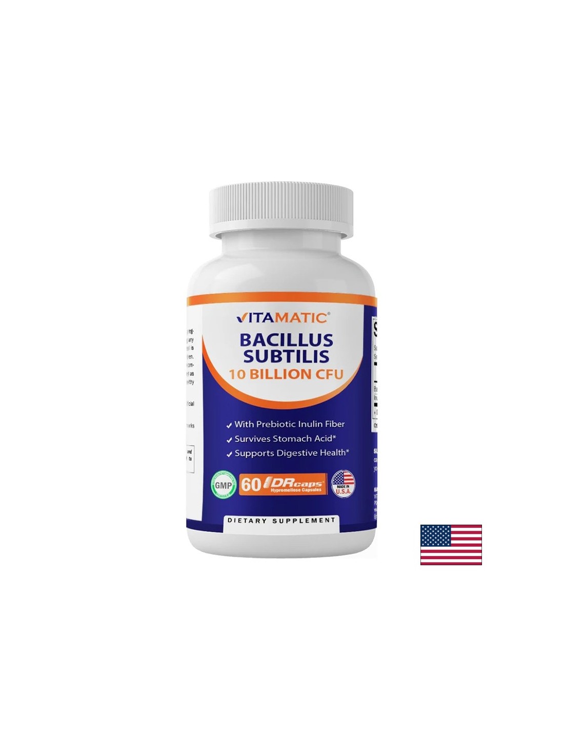 Съдържа 10 млрд. активни живи култури Bacillus subtilis и 300 mg инулин за поддържане на здрава чревна флора и силна имунна функция. Със забавено освобождаване за оптимално действие без дразнене на стомаха