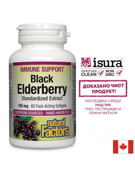 Черен бъз – мощен имуностимулатор Стандартизиран екстракт 100 mg, 60 софтгел капсули с бързо действие