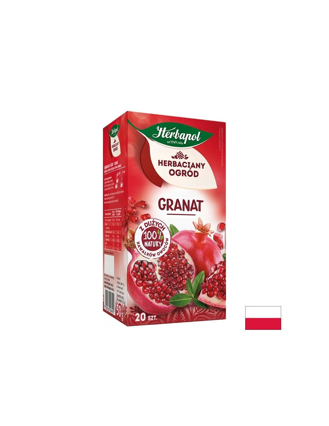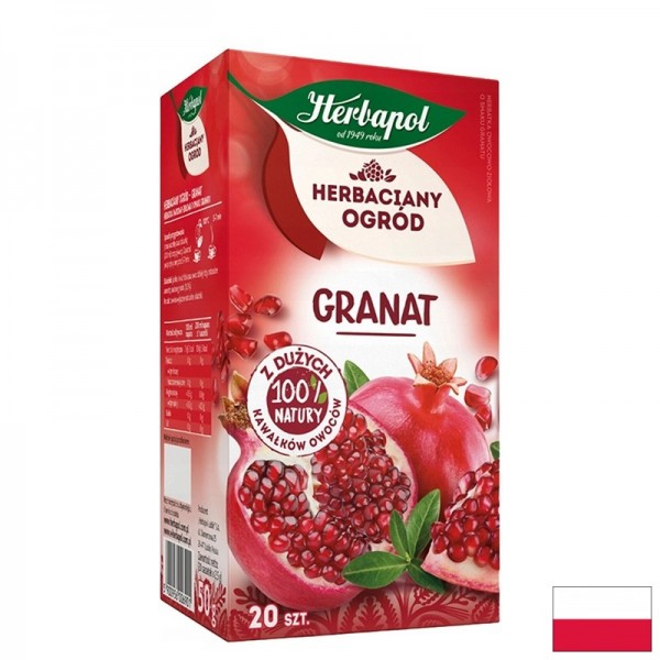 Плодов чай с аромат на нар, съчетаващ ябълка, хибискус и шипка за балансиран плодов вкус. Допълнен със семена от нар за характерен аромат и приятна свежест във всяка чаша. Подходящ за ежедневна консумация като част от разнообразен хранителен режим
