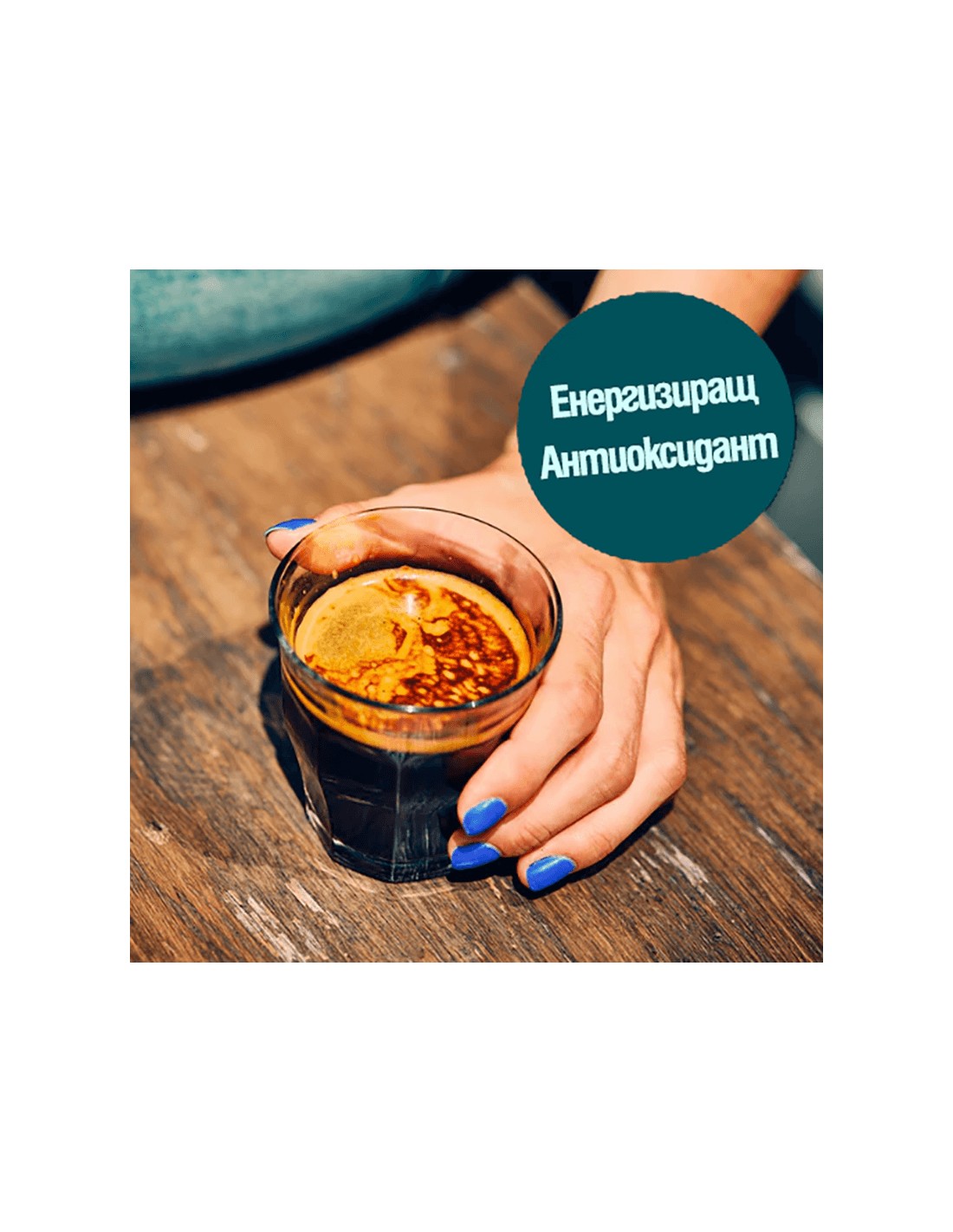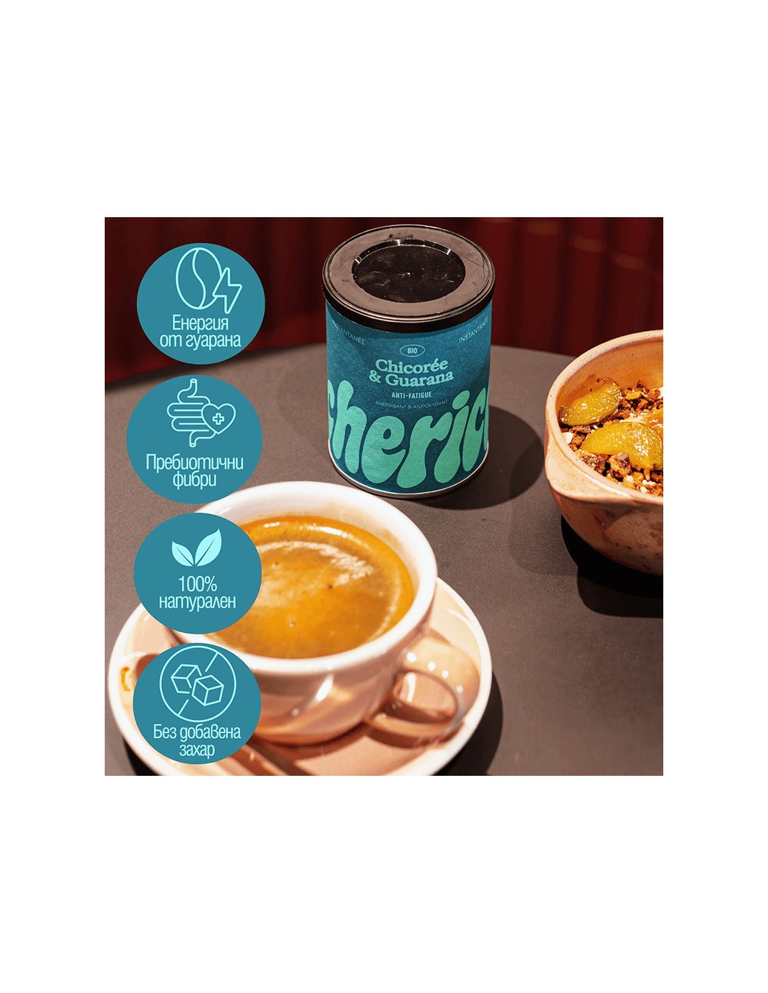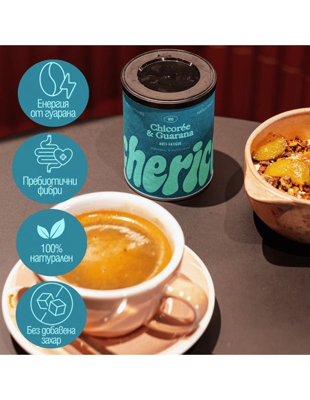 Натурална разтворима напитка с кофеин от гуарана – подпомага концентрацията и борбата с умората. Комбинира пребиотични фибри от цикория и антиоксиданти, без добавена захар. Перфектен избор за плавно събуждане и дълготрайна енергия през деня
