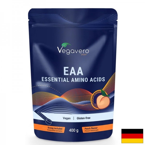 Пълноспектърна формула с 9 есенциални аминокиселини и 11.8 g EAA в дневна доза за подкрепа на мускулния синтез и възстановяване след тренировка. Обогатена с витамин B6 за нормален енергиен метаболизъм и намаляване на умората. С вкус на праскова, подходящ за вегани и активен начин на живот