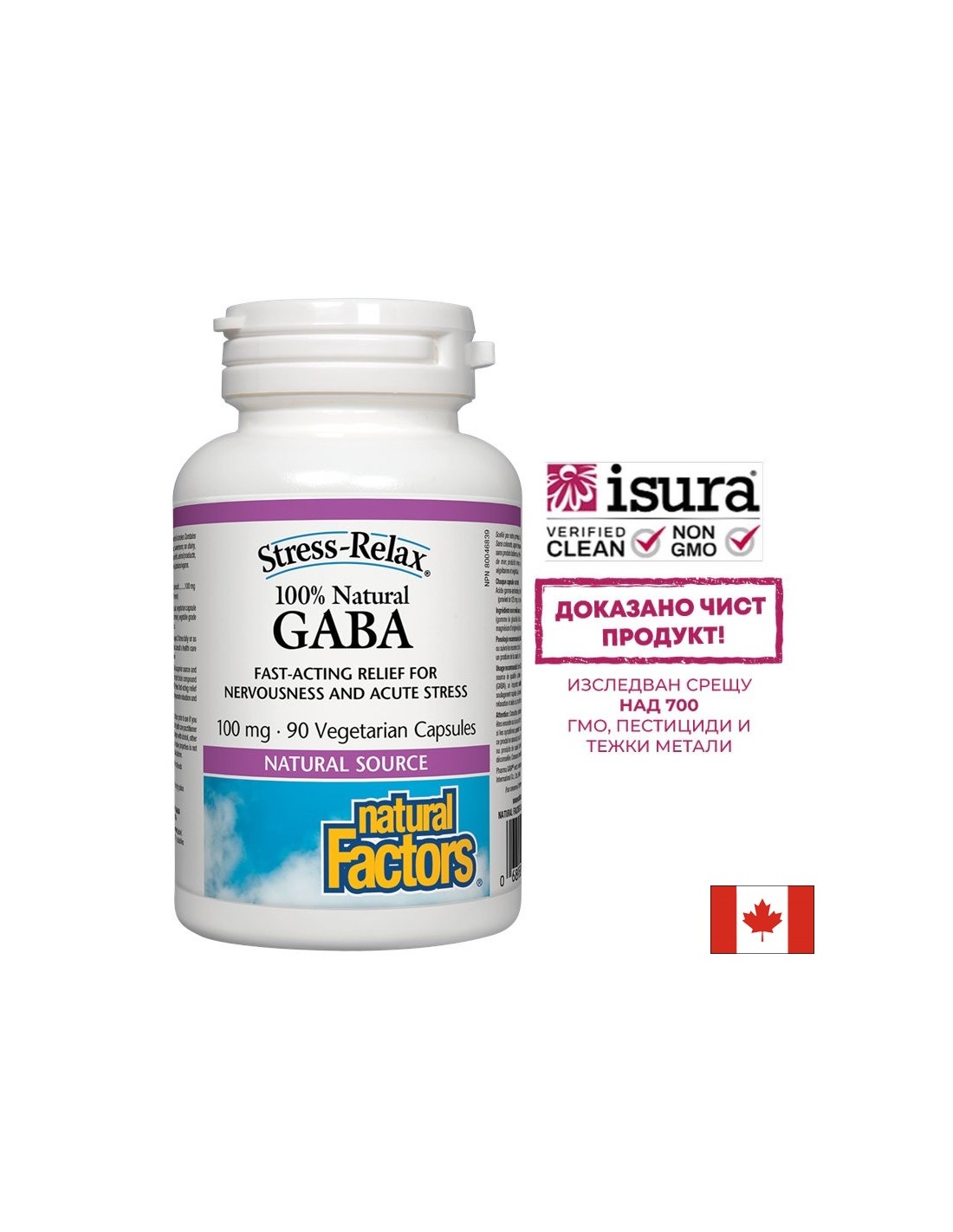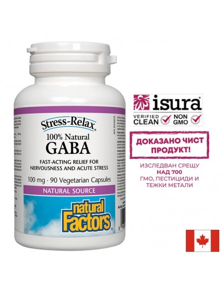 Продуктът GABA на Natural Factors, Canada предлага бързо и 100% естествено облекчение при състояния на силна тревожност! Съдържа ГАБА – гама-аминобутирова киселина /гама-аминомаслена киселина – инхибиторен невротрансмитер, регулиращ активността на невроните.