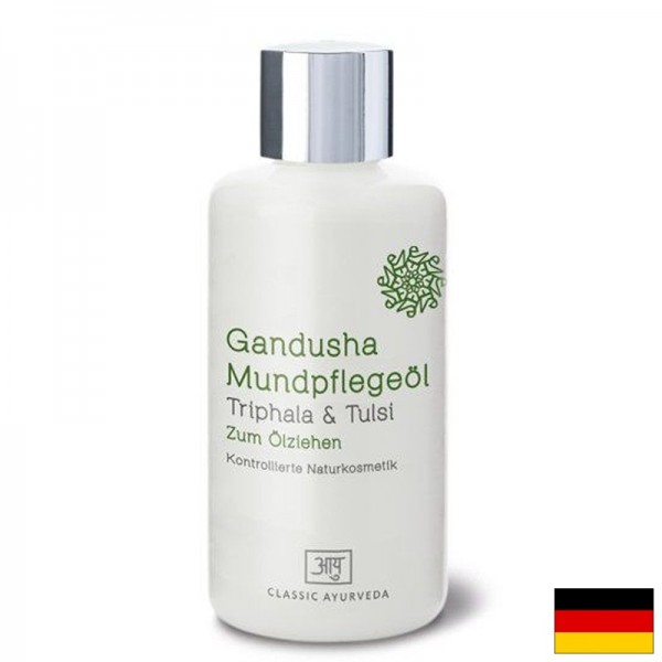 Аюрведа препоръчва изплакване на устната кухина сутрин, след почистване на езика и зъбите, със специално приготвено масло за грижа за устната кухина – Гандуша