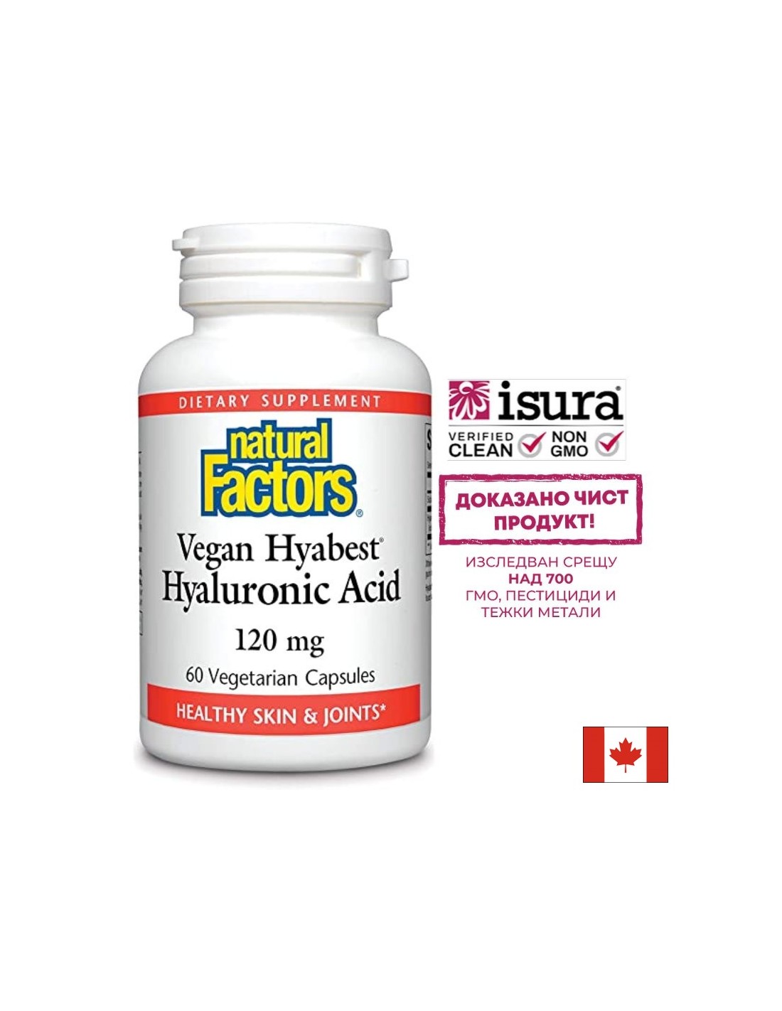 Hyabest® е високоефективна хиалуронова киселина, чиито прием има съществени ползи за здравето на кожата и ставите! Hyabest® НЕ съдържа изкуствени оцветители, аромати, консерванти, подсладители, млечни продукти, нишесте, захар, пшеница, соя, царевица, яйца, риба, черупчести, животински продукти, ядки или ГМО! Произвежда се посредством специален процес на ферментация и е подходяща за вегани!