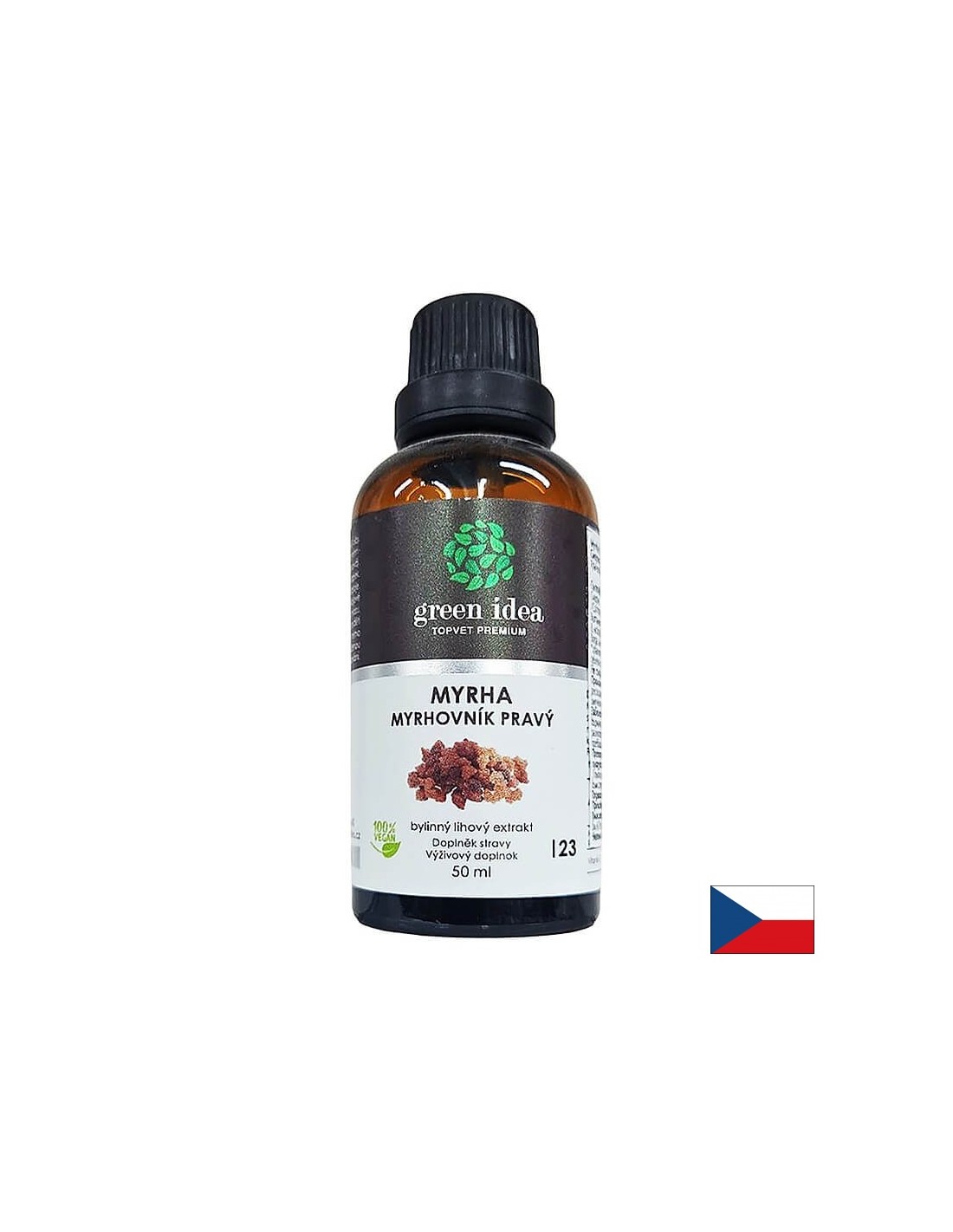 Тинктурата от смирна е част от широкия асортимент от висококачествени натурални продукти на чешката фирма Green Idea. Водещо начало в дългогодишната ѝ работа е могъщата и неизчерпаема целебна сила на природата.