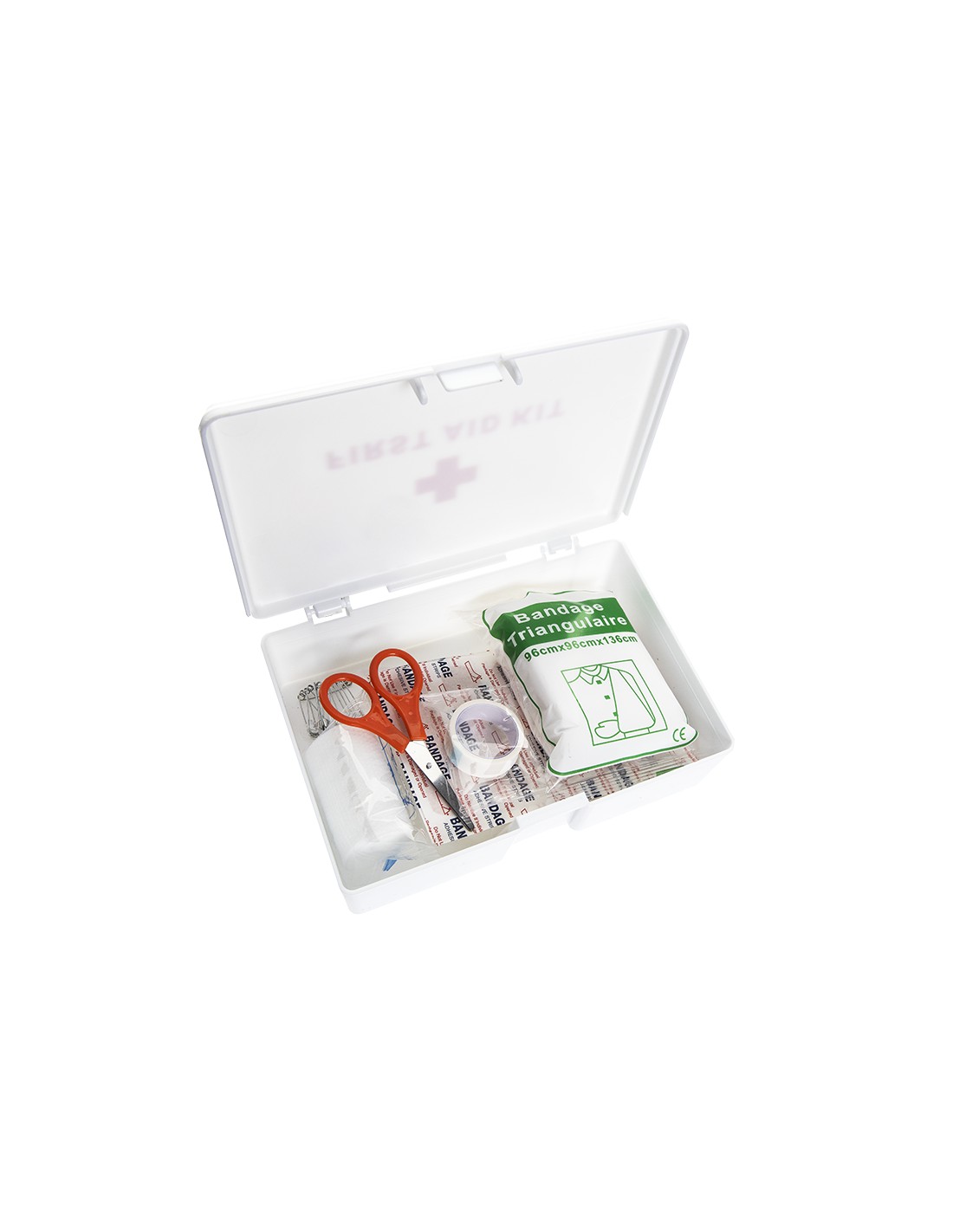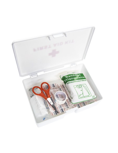 Удобен комплект за първа помощ с подбрани консумативи за използване при порязвания, охлузвания, леки наранявания и превръзки. Включва бинт, марля, лепенки, ножица, ръкавици, спиртни тампони и други основни средства. Подходящ за дома, офиса, автомобила или пътуване