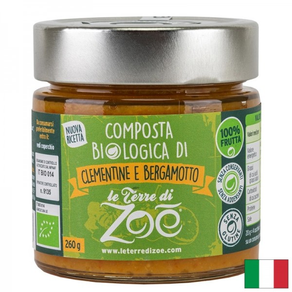 Фин био конфитюр с 85% мандарини и 15% бергамот, подсладен само с гроздова захар. Без консерванти, сгъстители и глутен – произведен от плодове от контролирано био земеделие. Подходящ за закуска, десерти или като изискан акцент към сирена и печива