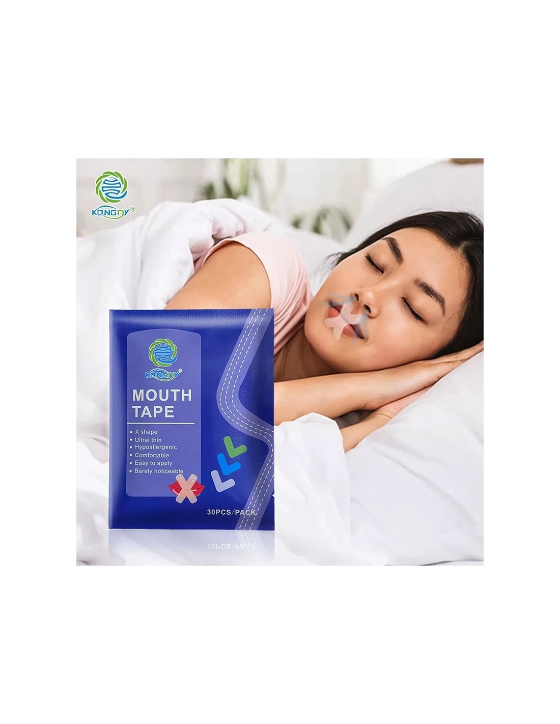 Дискретни лепенки за устни, които се използват по време на сън за насърчаване на носовото дишане и ограничаване на дишането през устата. Подходящи при хъркане, сухота в устата и неспокоен сън. Удобни и лесни за приложение