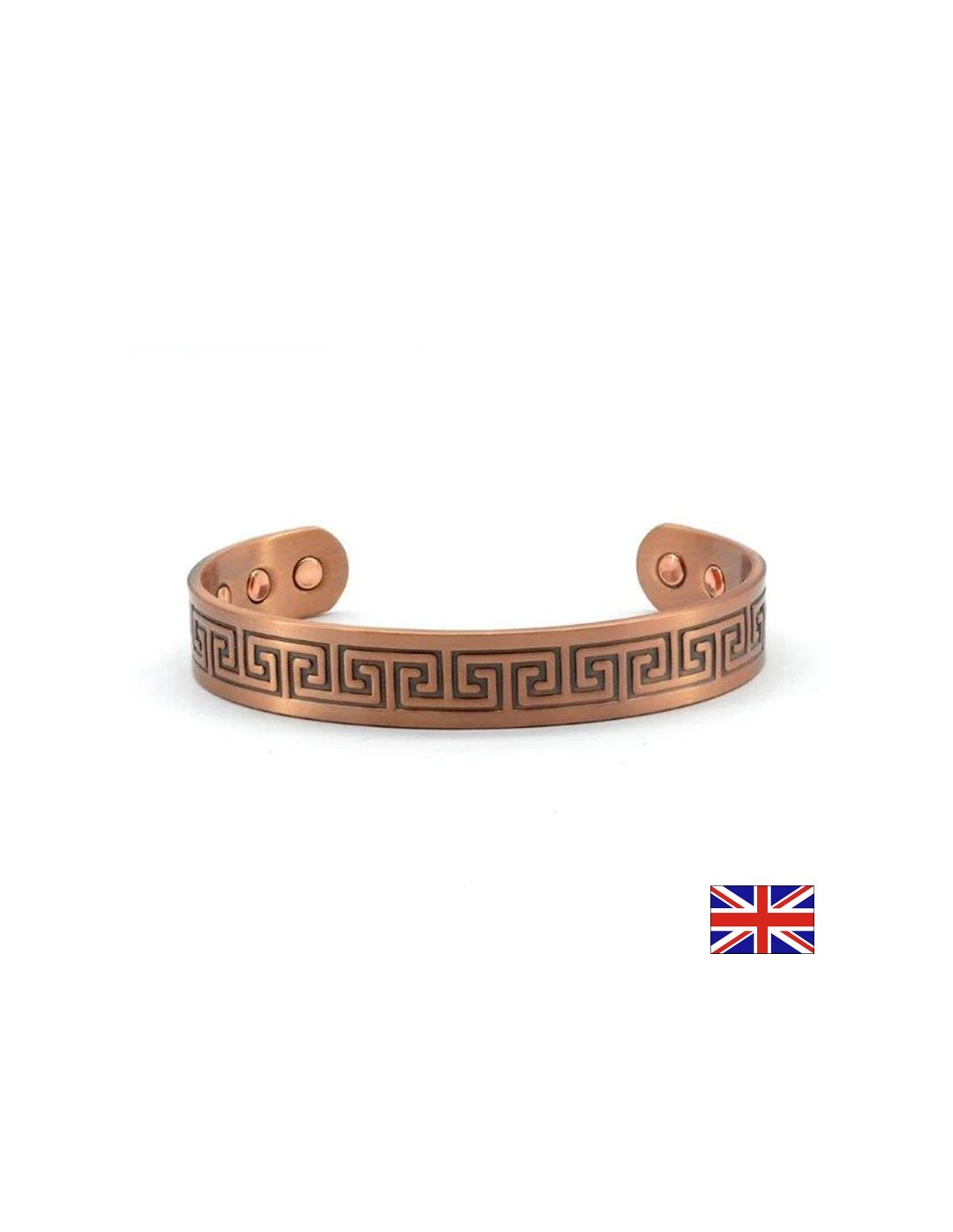 Стилна гривна с класически гръцки орнамент и вградени неодимови магнити – вдъхновена от символа на безкрайността и устойчивостта. Неодимовите магнити са изключително силни и дълготрайни, използвани в уелнес продукти заради своето постоянно магнитно действие. Подходяща за ежедневно носене и усещане за вътрешна хармония