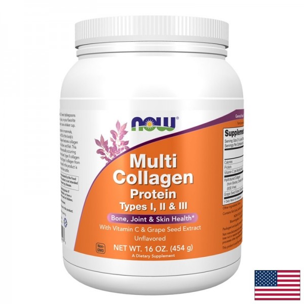Мулти колаген (тип I, II, III) + Витамин C 100 mg + Гроздови семки За здрави стави, кожа и коса 35 дневни дози, 454 g прах