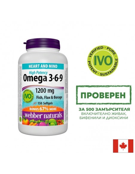 Омега 3-6-9 есенциални мастни киселини Хормонален баланс, сърдечна и мозъчна функция 1200 mg х 150 софтгел капсули