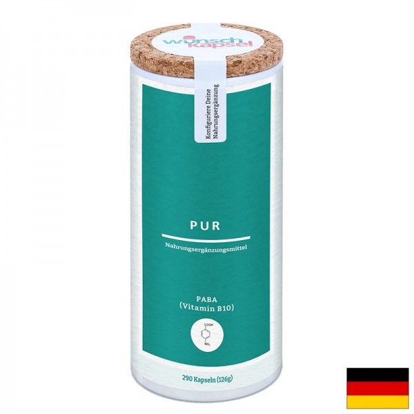 PABA (пара-аминобензоена киселина) е съединение от групата на витамин B-комплекс с антиоксидантни свойства. Подпомага поддържането на нормалното състояние на кожата и косата и участва в редица метаболитни процеси в организма. Подходящ за хора, които търсят целенасочена грижа за външния си вид