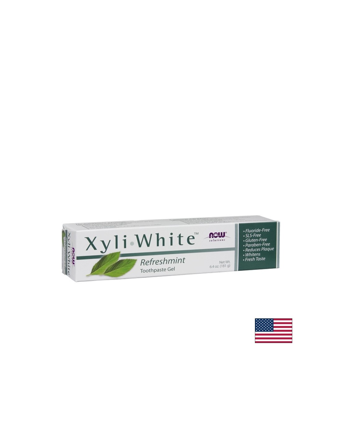 XyliWhite™ е избелваща паста за зъби без флуор и SLS, с 25% ксилитол, масла от мента и чаено дърво. Поддържа здравето на венците, освежава дъха и премахва повърхностни оцветявания. Подходяща за вегани, без глутен и парабени