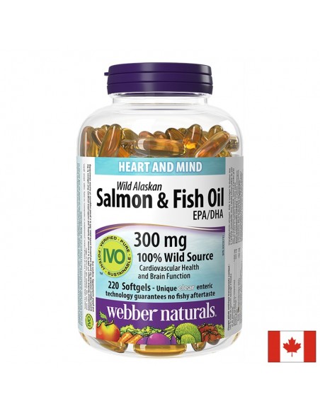 Сърдечна и мозъчна функция Дива сьомга (масло) от Аляска (1000 mg)+ Рибено масло (300 mg) 220 софтгел капсули