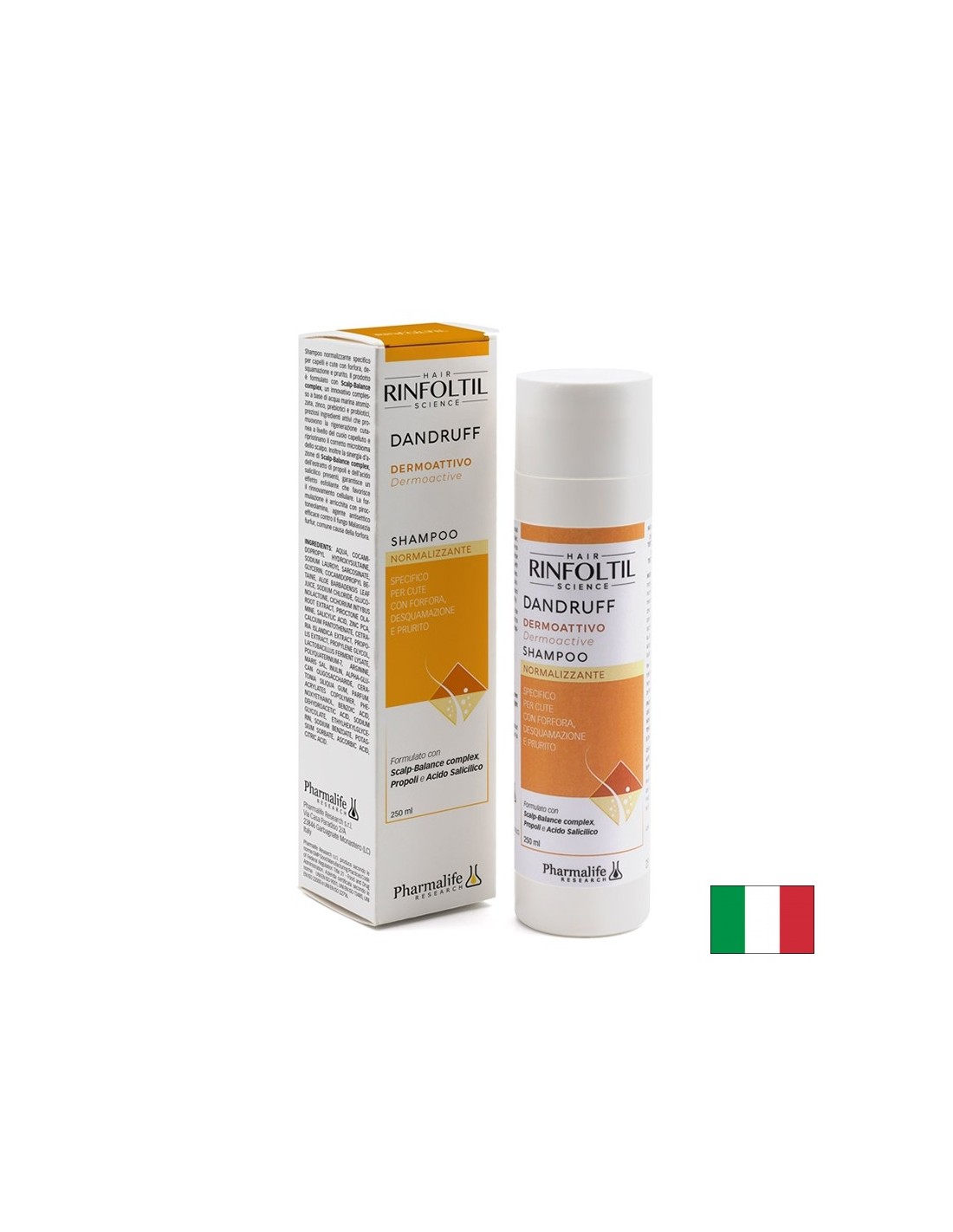 Шампоан RINFOLTIL против пърхот за жени с пироктон оламин – активна съставка, която се бори с гъбичките, причиняващи пърхот, и цинк PCA, който регулира омазняването и хидратира скалпа. С алое, прополис и исландски мъх за успокояване на чувствителната кожа и възстановяване на естествения баланс на скалпа