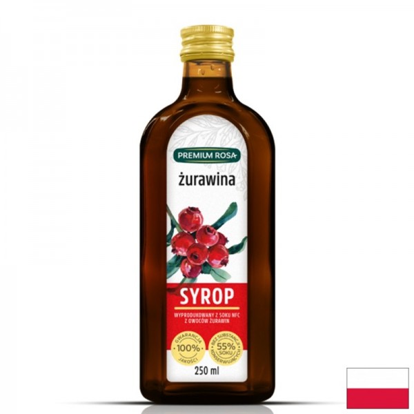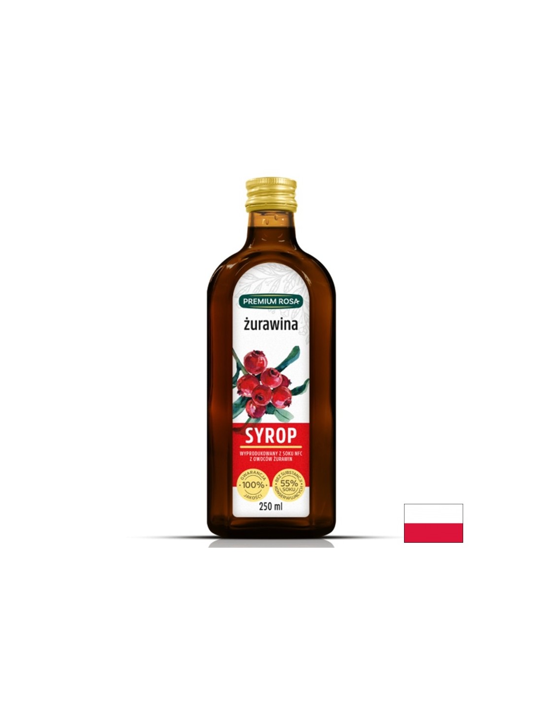 Нашият сироп е направен по стара полска домашна рецепта – само от прясно изцеден сок от червена боровинка и захар, без никакви изкуствени добавки. Пастьоризиран е, за да издържи по-дълго.