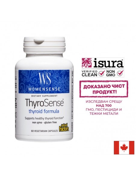 ThyroSense® Thyroid Formula е натурален препарат, предназначен за хора с хипотиреоидизъм. Съдържа Л-тирозин, селен, йод, мед, манган, пантотенова киселина и екстракти от ашваганда и гугул – комбинация от природни съставки с утвърдени ползи при хипофункция на щитовидната жлеза.