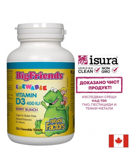 Категории: Natural Factors / Витамини и минерали / Детско здраве / Имунитет / Витамин D / Дъвчащи таблетки / Кости и стави / ОстеопорозаНай-продавани от категорията