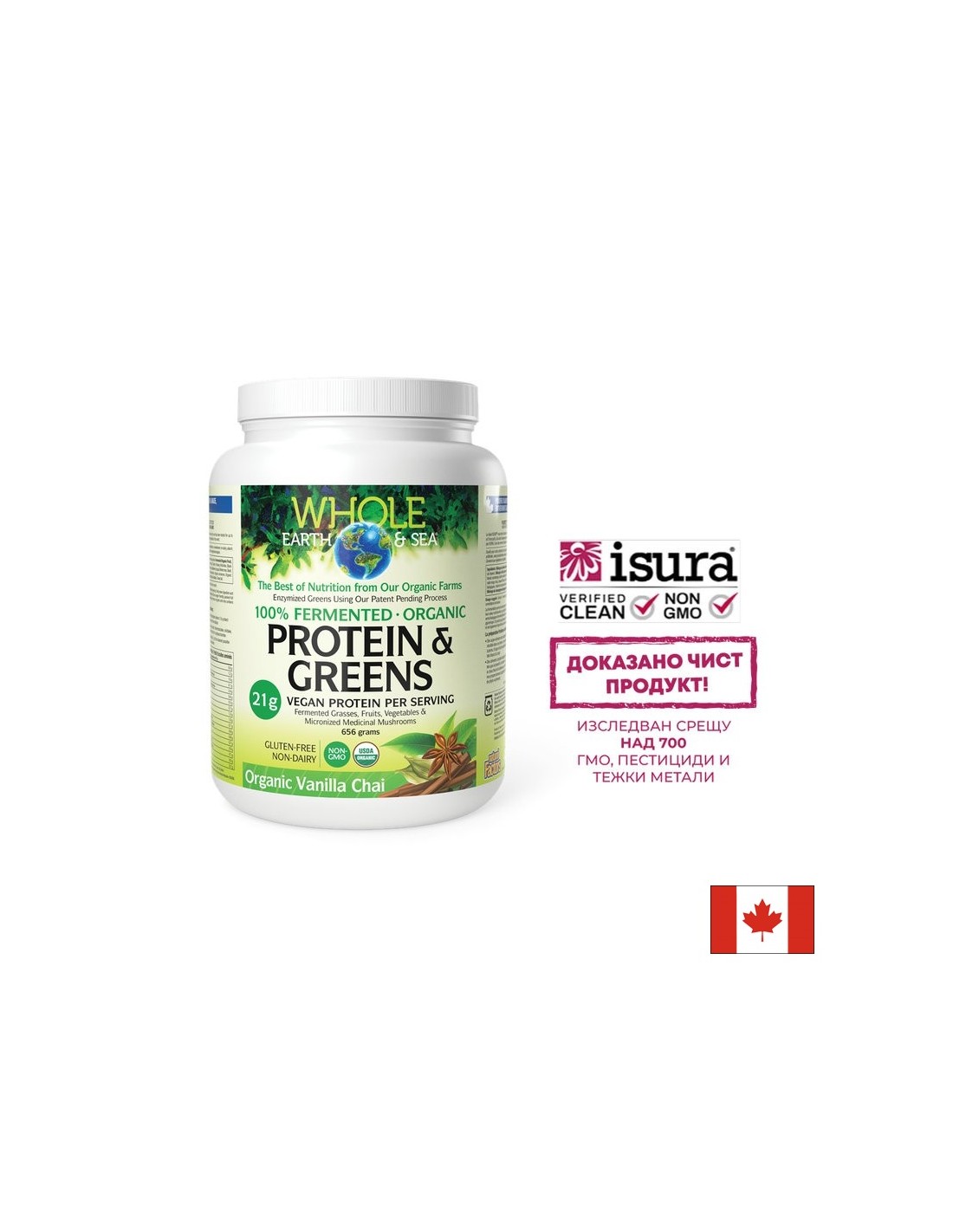 Whole earth and sea® 100 Fermented Organic Protein and Greens (неовкусен), 640 g пудра